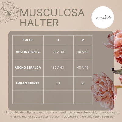 ¡Descubrí la Musculosa Halter, confeccionada en morley doble tela para ofrecerte máxima comodidad y durabilidad! Su diseño fresco y ajustado es ideal para lucir en cualquier ocasión, combinándola fácilmente con tus prendas favoritas. Perfecta para quienes buscan un básico versátil y con estilo, esta musculosa se adapta a tu cuerpo y aporta un toque moderno a tu look diario. ¡No te quedes sin la tuya y sentite cómoda y a la moda todo el día!